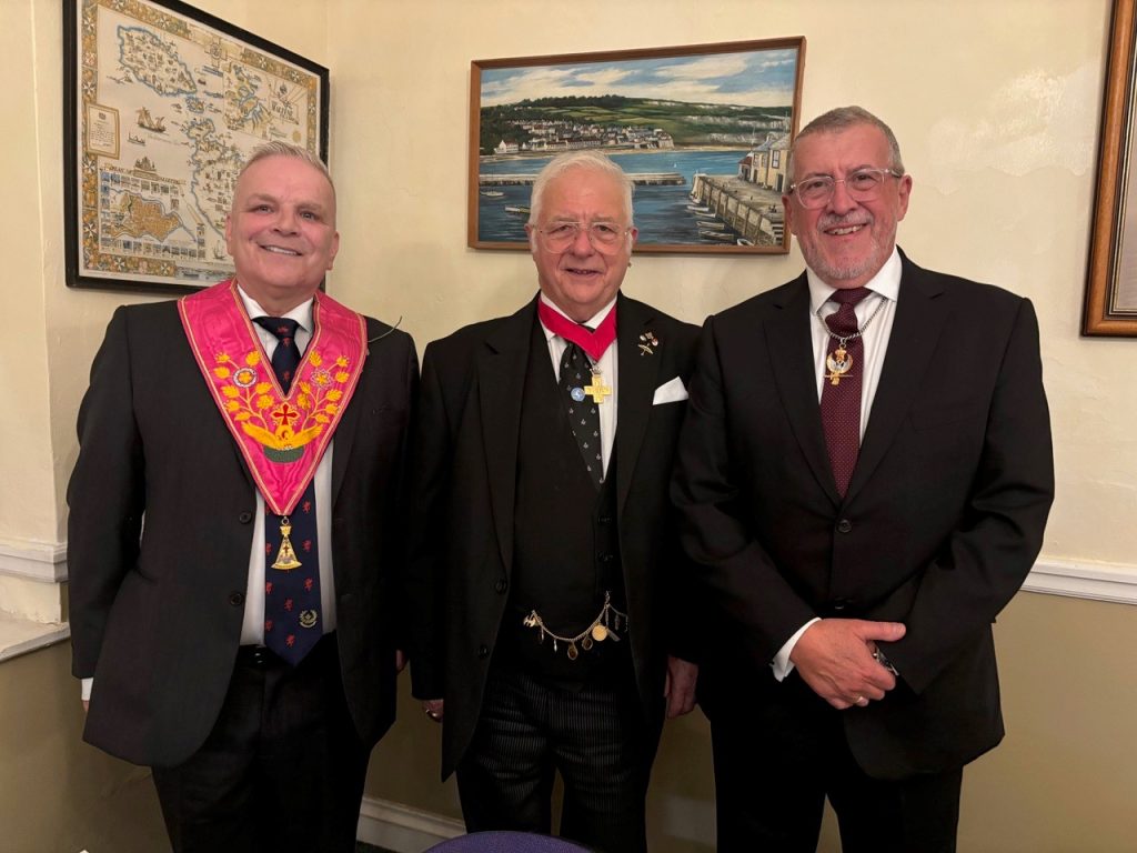 At the regular meeting held on Friday 10th October, the Most Wise Sovereign (MWS), Excellent and Perfect (E&P) Brother James McNally welcomed Very Illustrious Brother David Mason, Inspector General, on his first visit to the chapter. The Inspector General apologised that he has been unable to make the trip to Crewkerne until now due to diary pressures but was looking forward to the evening.